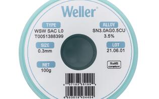 Weller WSW系列焊锡丝设计用于提高各类焊接作业的质量,能够有效提升生产率和优化焊接工艺性能。此外,产品采用低飞溅技术,令操作安全更有保障,同时保持工作区域清洁。丝内助焊剂连续性好,无断芯,且助焊剂熔点始终低于焊料熔点,即使处理高难度表面也能保证焊锡点经久耐用无裂纹。