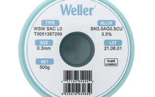 Weller WSW系列焊锡丝设计用于提高各类焊接作业的质量,能够有效提升生产率和优化焊接工艺性能。此外,产品采用低飞溅技术,令操作安全更有保障,同时保持工作区域清洁。丝内助焊剂连续性好,无断芯,且助焊剂熔点始终低于焊料熔点,即使处理高难度表面也能保证焊锡点经久耐用无裂纹。