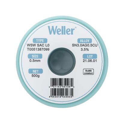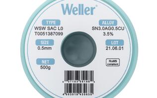 Weller WSW系列优质焊锡丝设计用于提高各类手工及机器人焊接作业的质量,不仅能够提升生产率,还能显著降低烙铁头更换频率 和缩短焊接时间,从而优化焊接工艺性能。此外,产品配备专利低飞溅技术,令操作安全更有保障,同时保持工作区域清洁。丝内助焊剂连续性好,无断芯,且助焊剂熔点始终低于焊料熔点,即使处理高难度表面也能保证焊锡点经久耐用无裂纹。