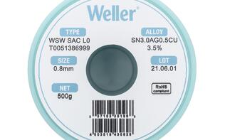 Weller WSW系列焊锡丝设计用于提高各类焊接作业的质量,能够有效提升生产率和优化焊接工艺性能。此外,产品采用低飞溅技术,令操作安全更有保障,同时保持工作区域清洁。丝内助焊剂连续性好,无断芯,且助焊剂熔点始终低于焊料熔点,即使处理高难度表面也能保证焊锡点经久耐用无裂纹。