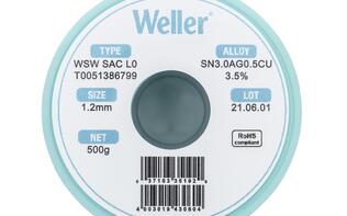 Weller WSW系列焊锡丝设计用于提高各类焊接作业的质量,能够有效提升生产率和优化焊接工艺性能。此外,产品采用低飞溅技术,令操作安全更有保障,同时保持工作区域清洁。丝内助焊剂连续性好,无断芯,且助焊剂熔点始终低于焊料熔点,即使处理高难度表面也能保证焊锡点经久耐用无裂纹。