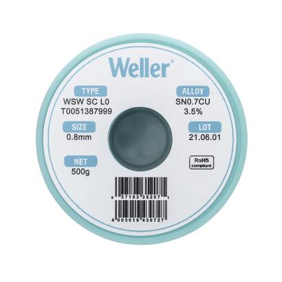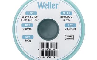 Weller WSW系列焊锡丝设计用于提高各类焊接作业的质量,能够有效提升生产率和优化焊接工艺性能。此外,产品采用低飞溅技术,令操作安全更有保障,同时保持工作区域清洁。丝内助焊剂连续性好,无断芯,且助焊剂熔点始终低于焊料熔点,即使处理高难度表面也能保证焊锡点经久耐用无裂纹。