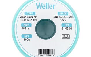 Weller WSW系列焊锡丝设计用于提高各类焊接作业的质量,能够有效提升生产率和优化焊接工艺性能。此外,产品采用低飞溅技术,令操作安全更有保障,同时保持工作区域清洁。丝内助焊剂连续性好,无断芯,且助焊剂熔点始终低于焊料熔点,即使处理高难度表面也能保证焊锡点经久耐用无裂纹。