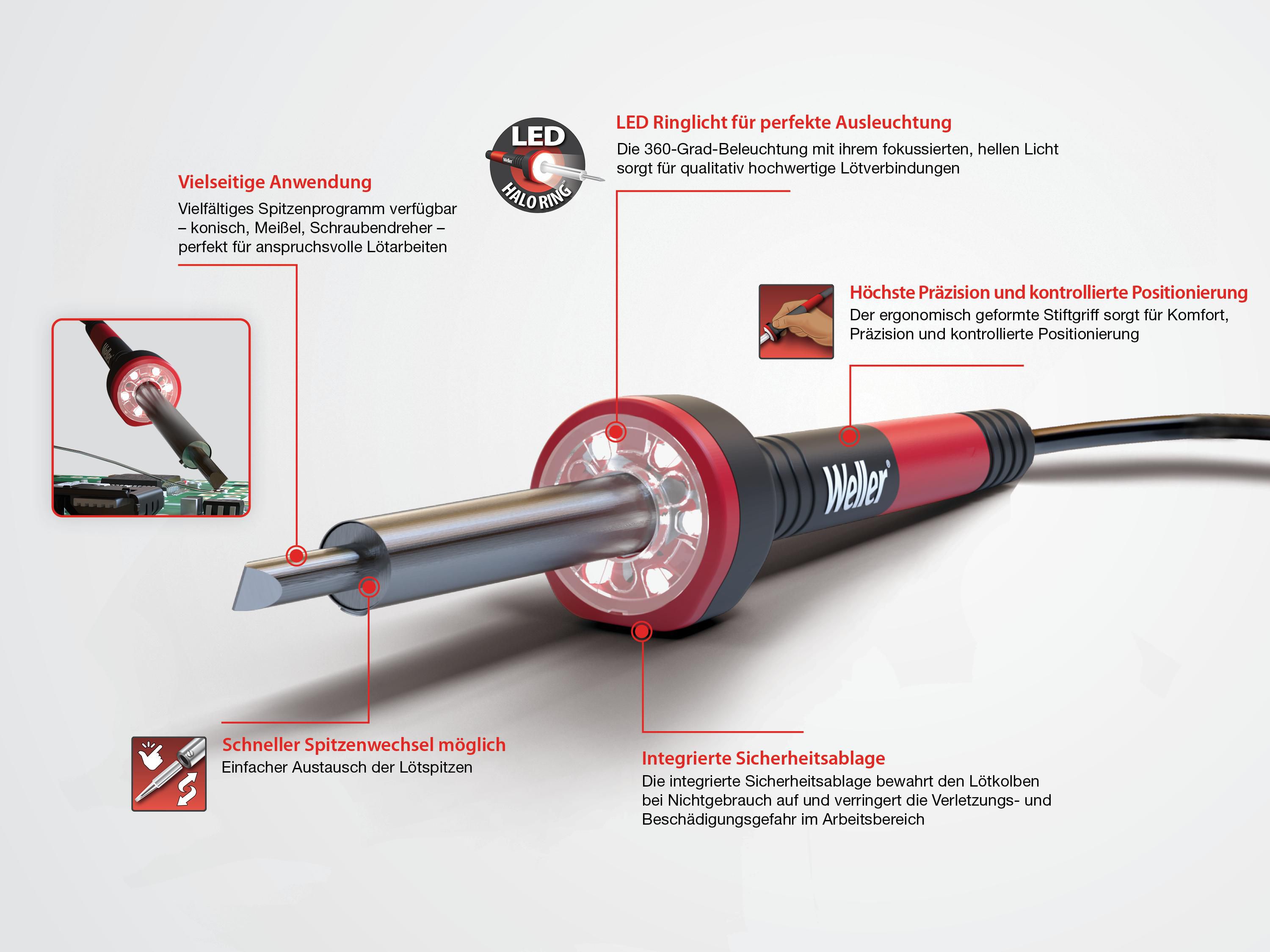 360-Grad-Beleuchtung sorgt für fokussiertes, helles Licht, das qualitativ hochwertige Lötstellen gewährleistet
