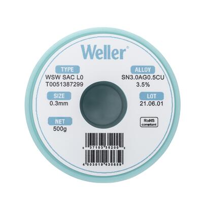 Die Weller WSW Lötdrähte verbessern die Qualität aller Lötarbeiten. Mit einem garantiert 100%ig kontinuierlichen Flussmittelkern, kombiniert mit reinen Erstmetallschmelzen, vermeiden die WSW Lötdrähte kostspielige Nacharbeiten und ermöglichen langfristige, hochbeständige Lötverbindungen ohne Rissbildungen, selbst auf schwierigen Oberflächen. Das reduzierte Spritzverhalten der Drähte erhöht die Arbeitssicherheit und sorgt für einen sauberen Arbeitsbereich.