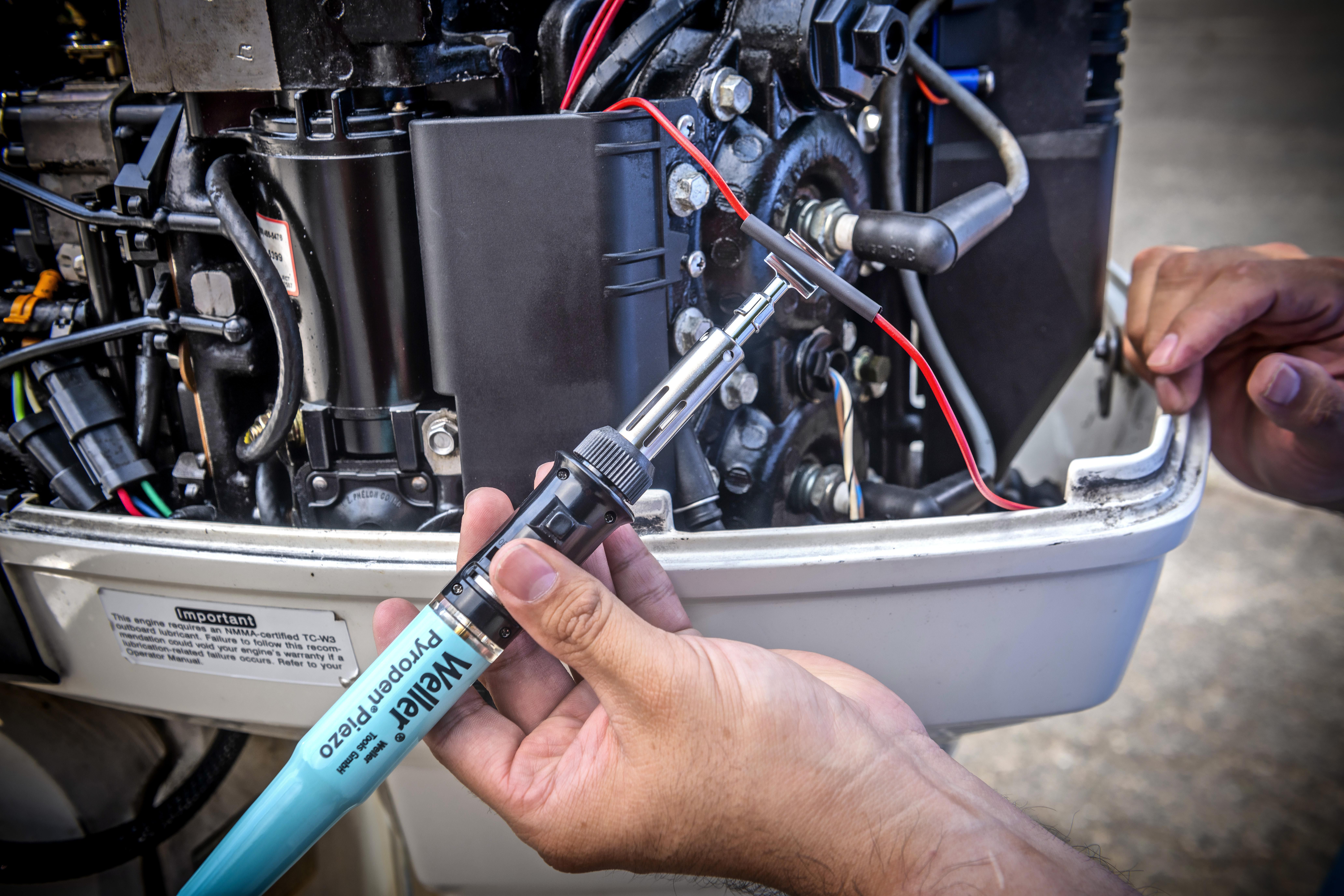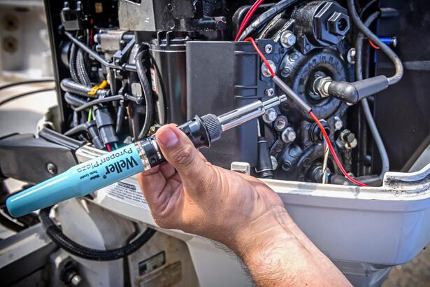 Butangas-Lötkolben ermöglicht ca. 3 Stunden Betriebsdauer mit einer Füllung von Weller Butangas -