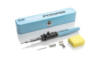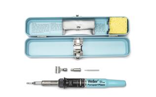Der Weller Pyropen Piezo-Butan-Gaslötkolben ist ein selbstzündender Lötkolben mit Löt- und Heißluftfunktion. Das Werkzeug hat eine schnelle Aufheizzeit und eine Füllung Butangas reicht für bis zu 3 Stunden. Er ist ideal für das Löten unterwegs und hilft, Lötarbeiten überall zu erledigen, ohne dass ein Netzanschluss oder ein störendes Kabel erforderlich ist. Die Temperatur ist bei Verwendung als Lötkolben zwischen 250°C und 500°C und bei Verwendung als Heißluftgerät bis zu 650°C einstellbar. Dank seines Piezozünders kann der Weller Pyropen bequem ohne weiteres Werkzeug entzündet werden.