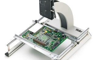 Vorheizplatte WHP 3000 (Zubehör) kann zur Ergänzung einfach in die Führung unterhalb des Leiterplattenhalters eingeschoben werden