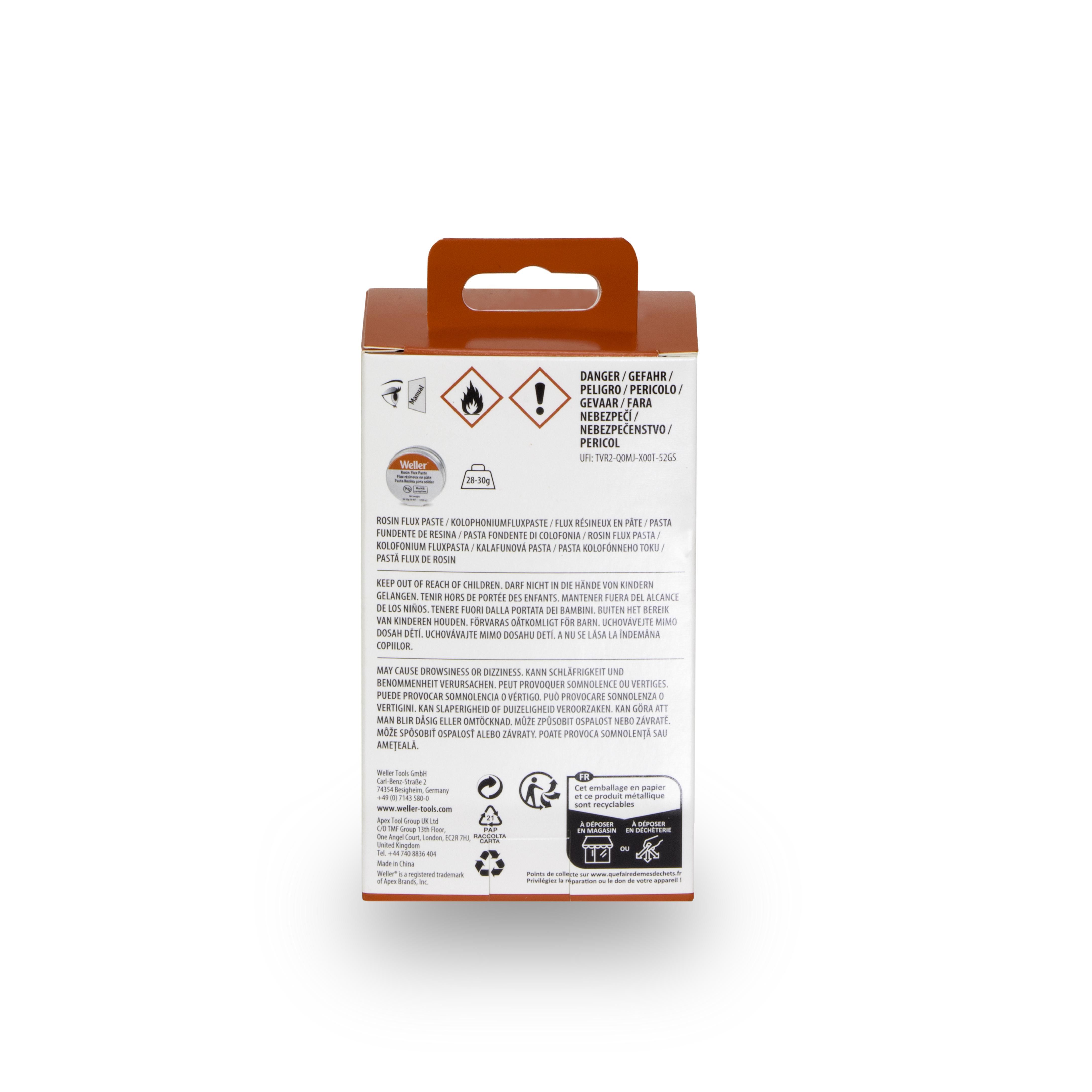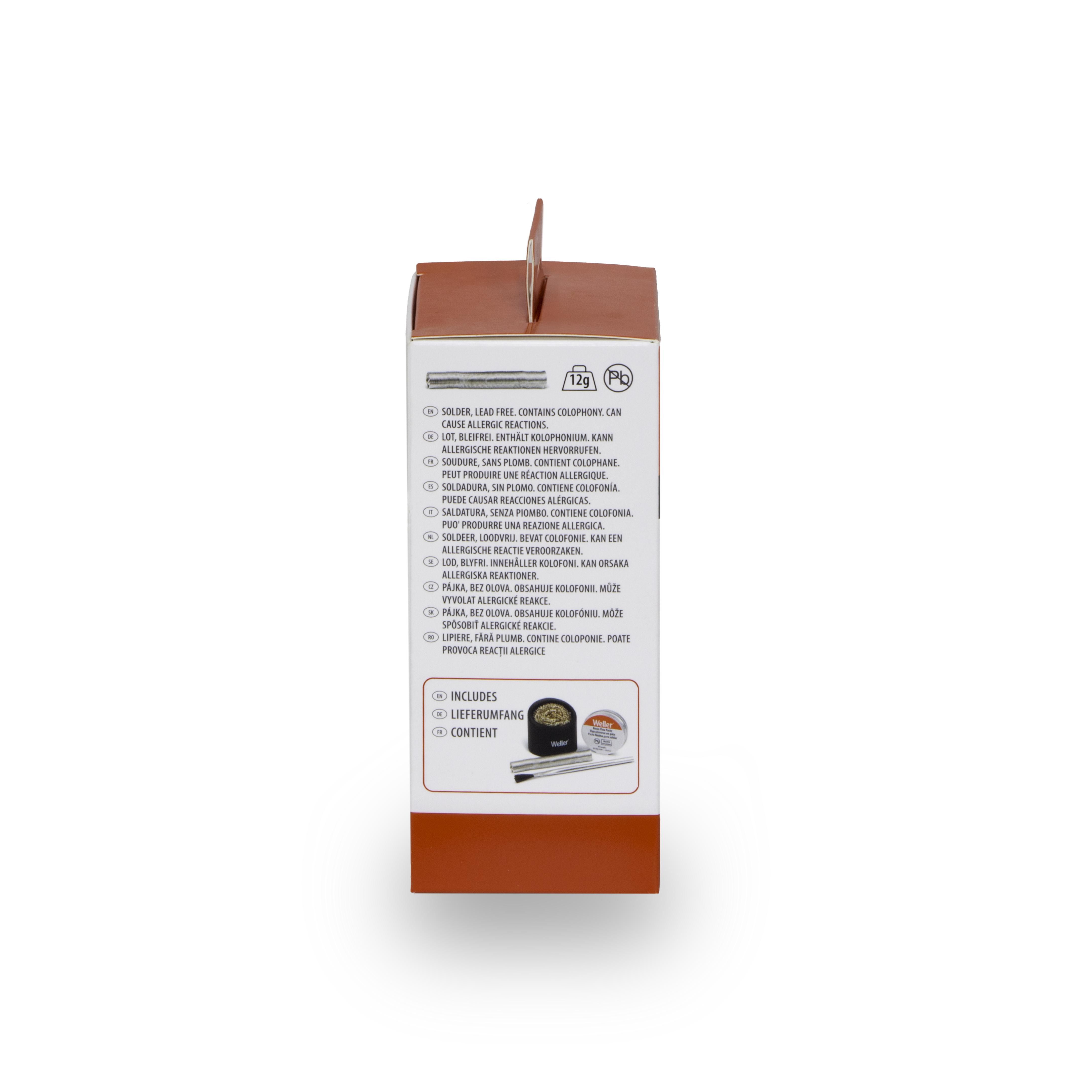 1 oz. de pâte de flux, soudure sans plomb SN99.25Cu 0,75 dia. 0,8 mm (0,031 po) x 12,2 g (0,43 oz), 1 brosse de flux et 1 nettoyeur de fil en laiton avec support en silicone pour assurer des joints de soudure fiables et prolonger la durée de vie de la panne à souder
