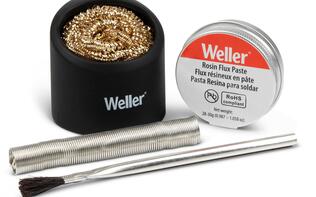 Le kit d'accessoires de soudage Weller WCACCK2 peut être utilisé avec les fers à souder, les stations de soudage et les pistolets à souder Weller pour les projets et les réparations électroniques. Cet ensemble est livré avec une pâte de colophane, une soudure sans plomb, une brosse à flux et un nettoyeur de fil en laiton avec support en silicone.