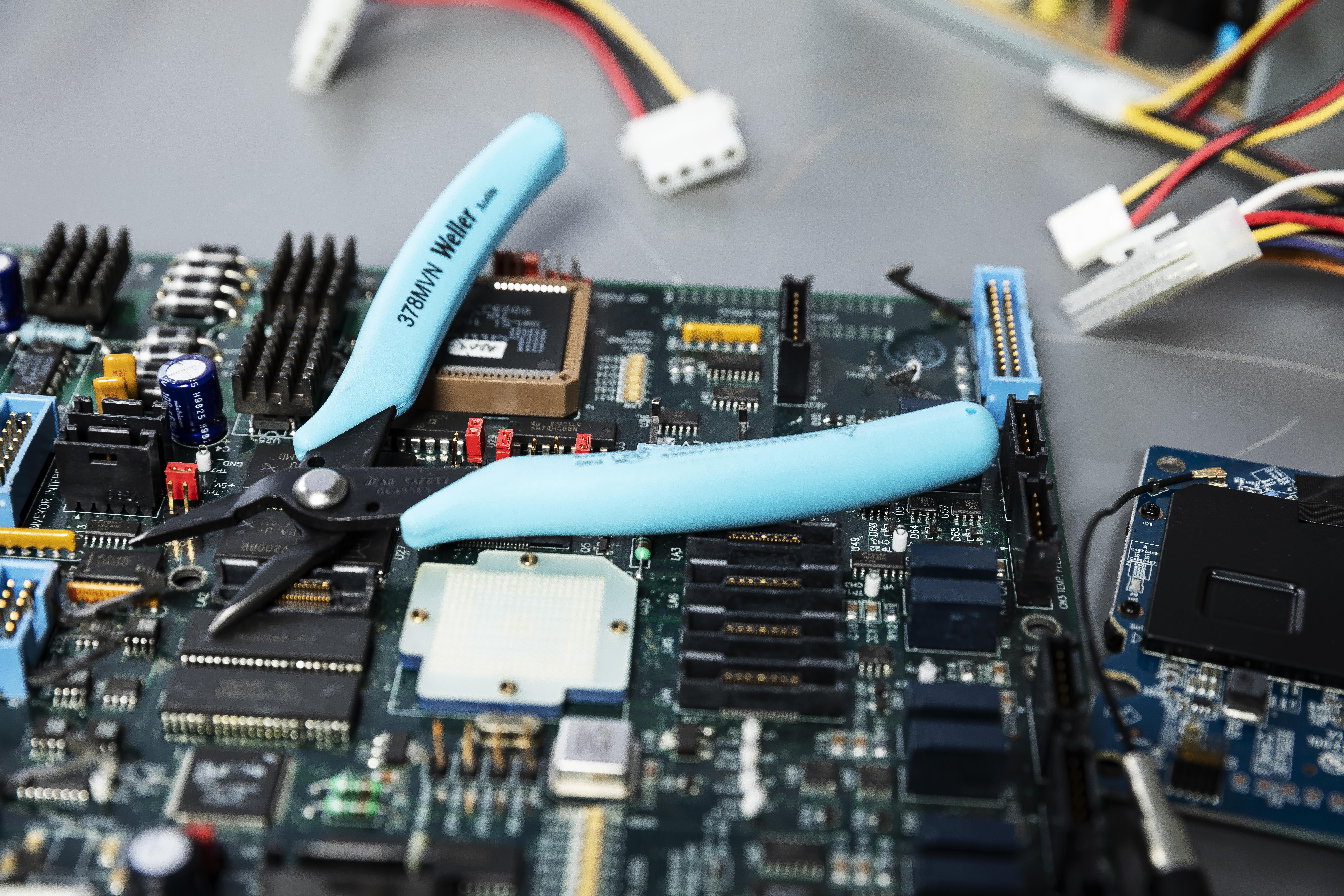 La pince Weller® Xcelite® Micro Series - Mâchoires dentelées présente un profil fin pour une longue portée et un accès dans les espaces restreints.