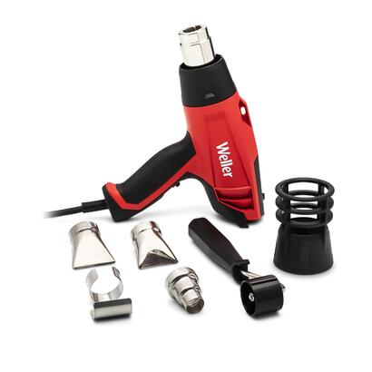 Weller's new Swiss-engineered Heat Gun with Stepless Temperature Control delivers unparalleled performance, convenience and user-friendly operation. Designed with meticulous attention to detail, this remarkably quiet and ergonomic heat gun delivers a fast heat-up time, built-in overheat protection and an impressive 750+ hours of lifetime use, ensuring reliable project performance. Its portable design provides a comfortable grip, allowing you to handle it with ease, even during extended use. The integrated stand enables hands-free operation, enabling you to multitask with confidence, while the optional nozzles and accessories tailor the heat gun to your specific needs. Experience the precision, versatility, and superior performance of Swiss engineering with the Weller’s Heat Gun..
