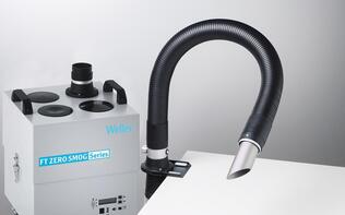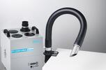 Energy-efficient fume extraction system purifies air at up to 4 workplaces, included nozzle for applications where a precise area must be extracted from above or where there is limited space at the workbench