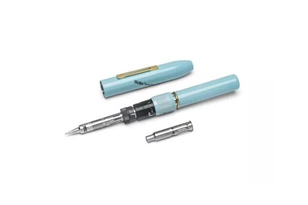 The Weller Pyropen Junior is a manual ignited lightweight Butane gas operated soldering iron with solder, hot blow and blow torch functions. Ready to use within 30 seconds it helps to complete soldering tasks anywhere, without the need for a mains supply or an obstructing cable. Supplied with aluminium protective cap with pocket clip and safety feature to prevent the cap being fitted when the iron is on. Temperature variable between 250°C to 450°C when used as a soldering iron, up to 430°C when used as a hot air blower.