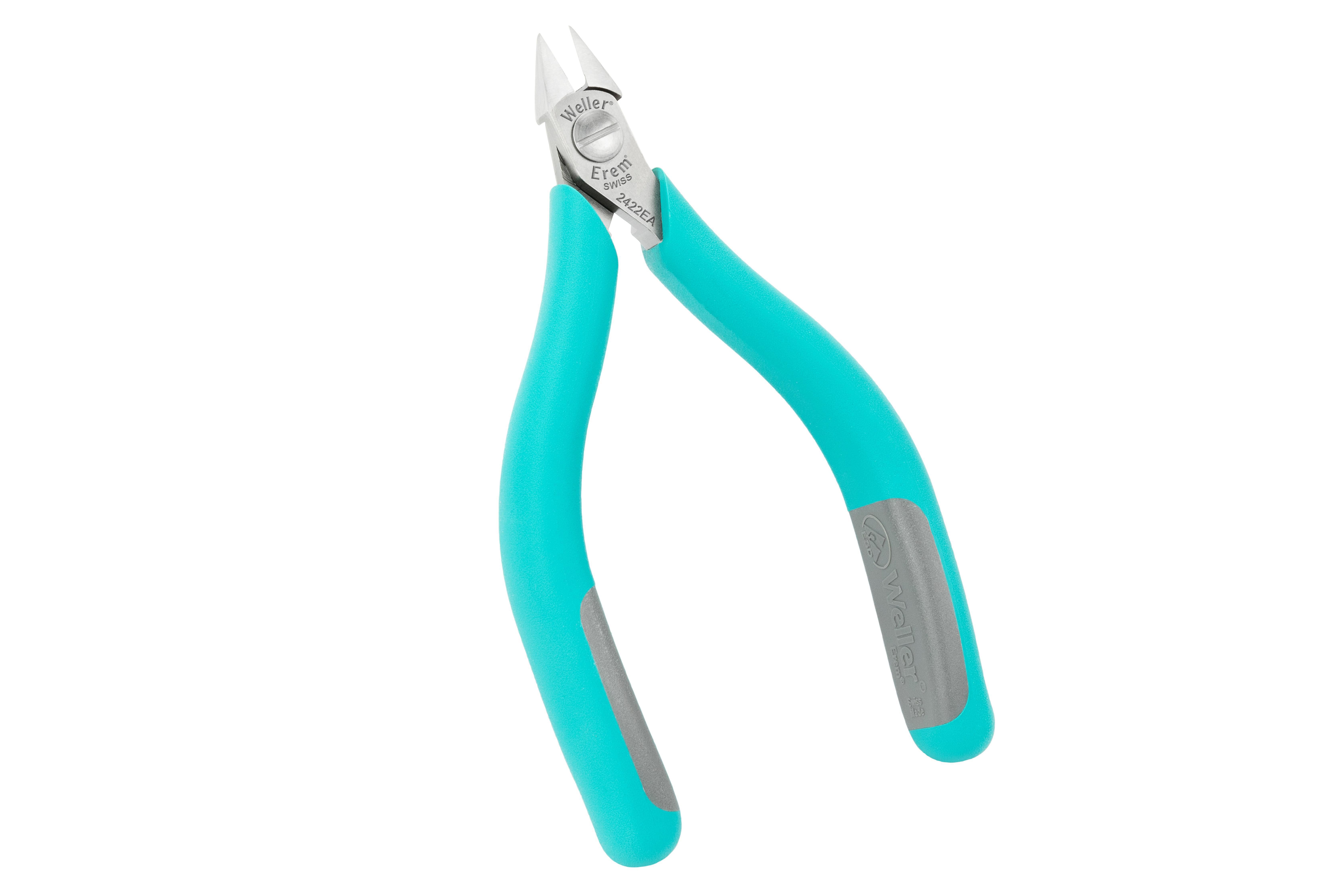 The Weller Erem Series 2400 Magic Sense is a range of medium-sized precision cutters that combines robustness, visibility and accessibility. A large variety of head shapes for precision work in hard-to-reach areas. The optimized ergonomic shape of the Series 2400 MagicSense prevents hand fatigue. These cutters are manufactured from improved induction-hardened cutting edges (over 60 HRc) for an extremely long service life. The cutting edges are made from special tool steel. The precision cutters have a nonreflecting surface, are ESD safe and resharpenable.
