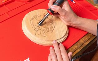 Il kit WLIWBK1523C da 8 pezzi per progetti di pirografia ispira la creatività con tutto ciò che occorre per iniziare il tuo viaggio nell'hobby della pirografia. La distanza ridotta tra la punta e l'impugnatura del pirografo Weller a stilo corto, consente una migliore accuratezza e una maggiore precisione su una grande varietà di supporti in legno e cuoio