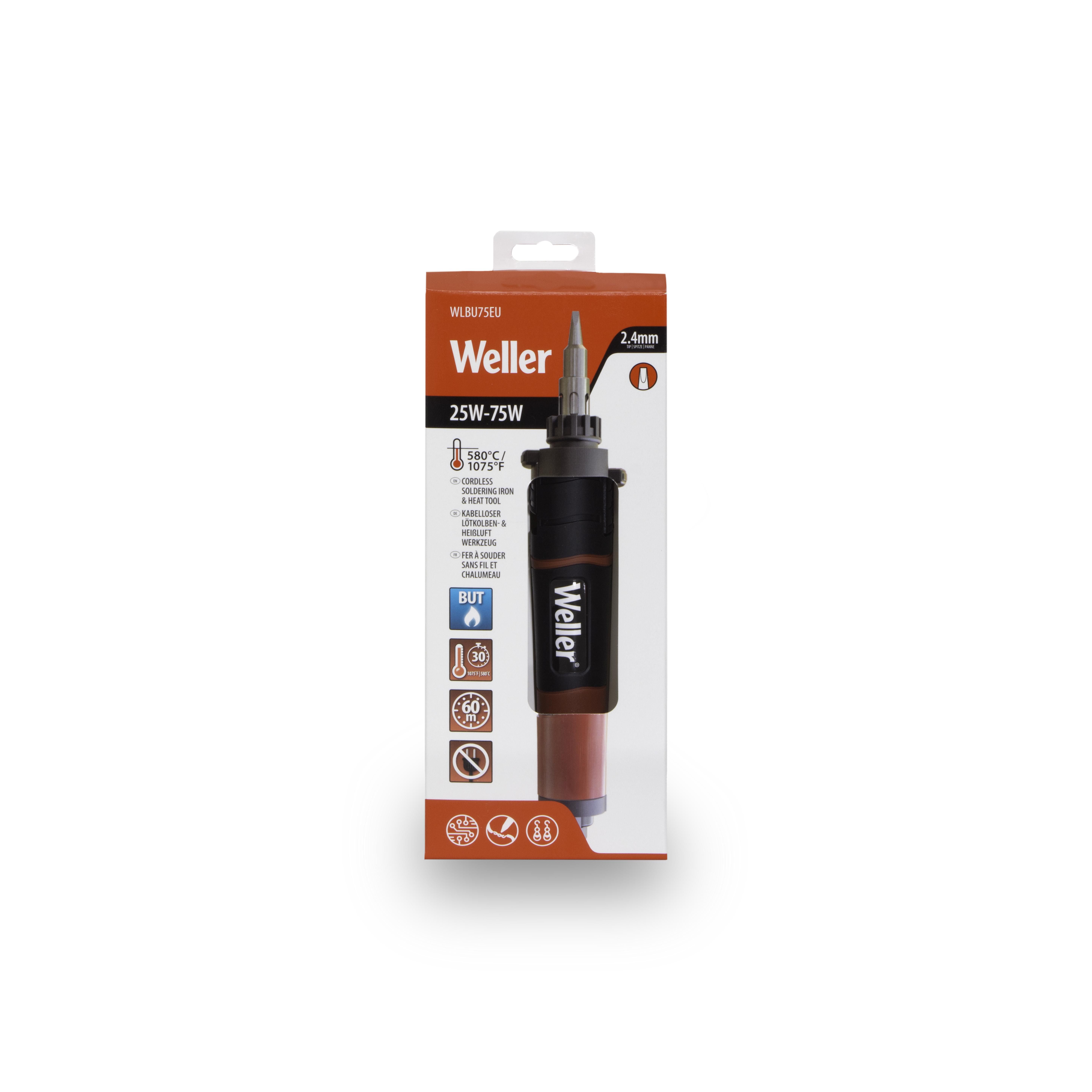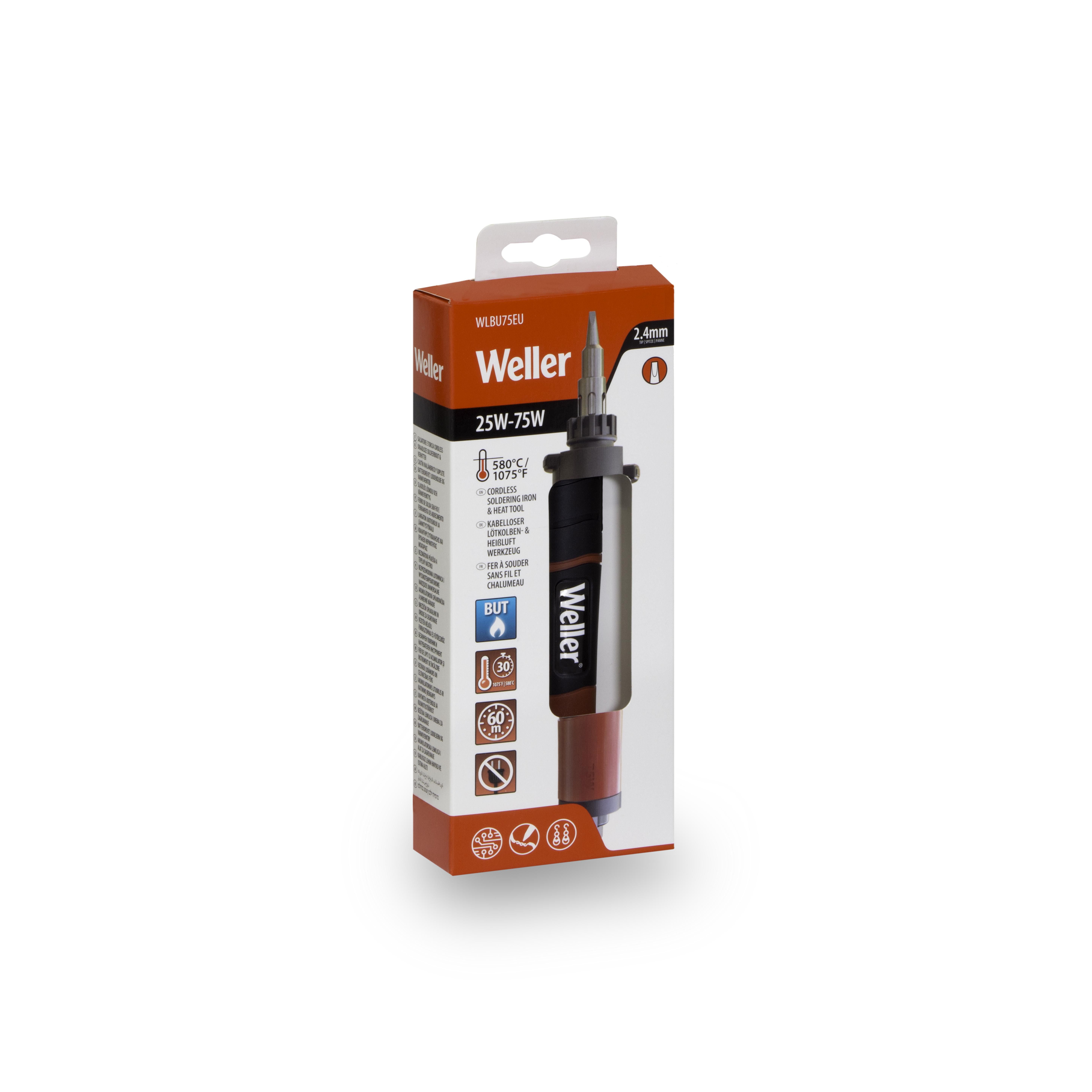 Salda dove vuoi e senza limiti di movimento con il saldatore con aria calda Weller. Il butano e i 25 W-75 W garantiscono una saldatura continua e senza interruzioni. Grazie a ricariche di butano rapide e veloci, all'ampia gamma di punte, allo spegnimento automatico e alla capacità di convertirsi ad applicazioni ad aria calda/torcia, è lo strumento perfetto per ogni esigenza di saldatura.