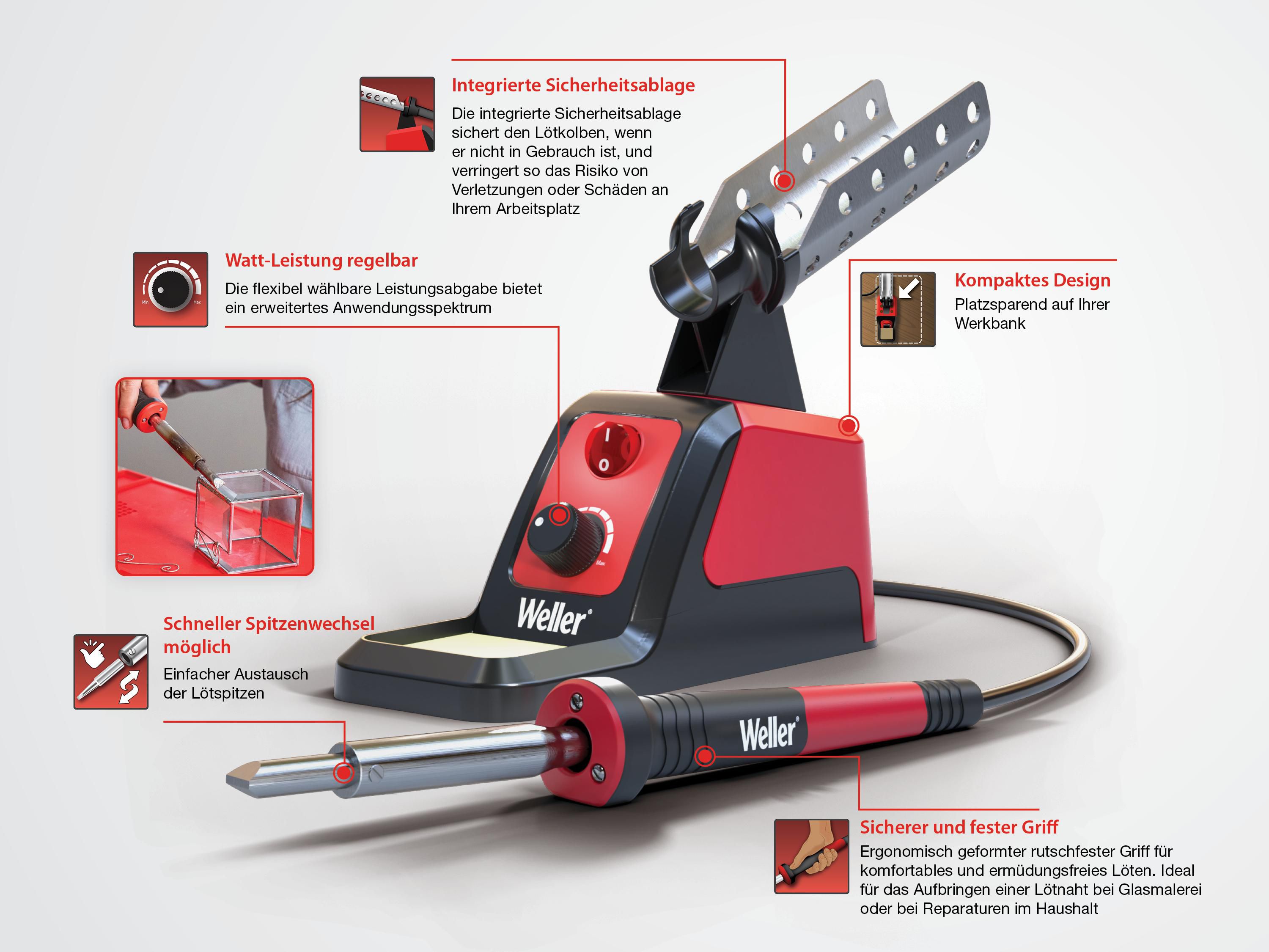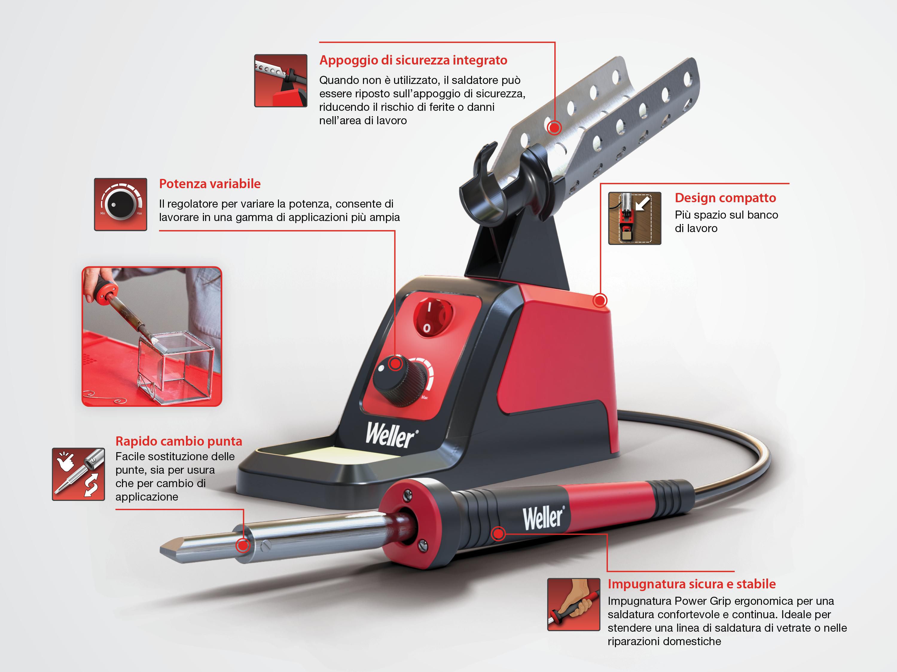 Salda con maestria e sicurezza con la stazione di saldatura ricaricabile Weller a potenza variabile da 20 a 80. Con l'impugnatura ergonomica sagomata a matita, pulitore punte, porta punte e supporto di sicurezza integrato, è la stazione di saldatura versatile e di alta qualità perfetta per tutte le esigenze di saldatura.