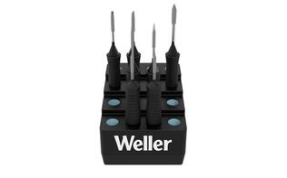 Comoda conservazione delle punte: Le punte a cartuccia / le punte attive Weller possono essere conservate in modo sicuro nel portapunte a cartuccia WTCH, proteggendo l'operatore dai puntali caldi sul banco di lavoro. Il Weller WTCH è compatibile con le serie di punte RTP, RTM, RTU, RTPS, RTMS, RTUS