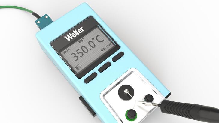 Il dispositivo di misurazione della temperatura al alta precisione Weller, dal design compatto e alimentato a batteria, può essere facilmente condiviso tra diverse postazioni di lavoro -