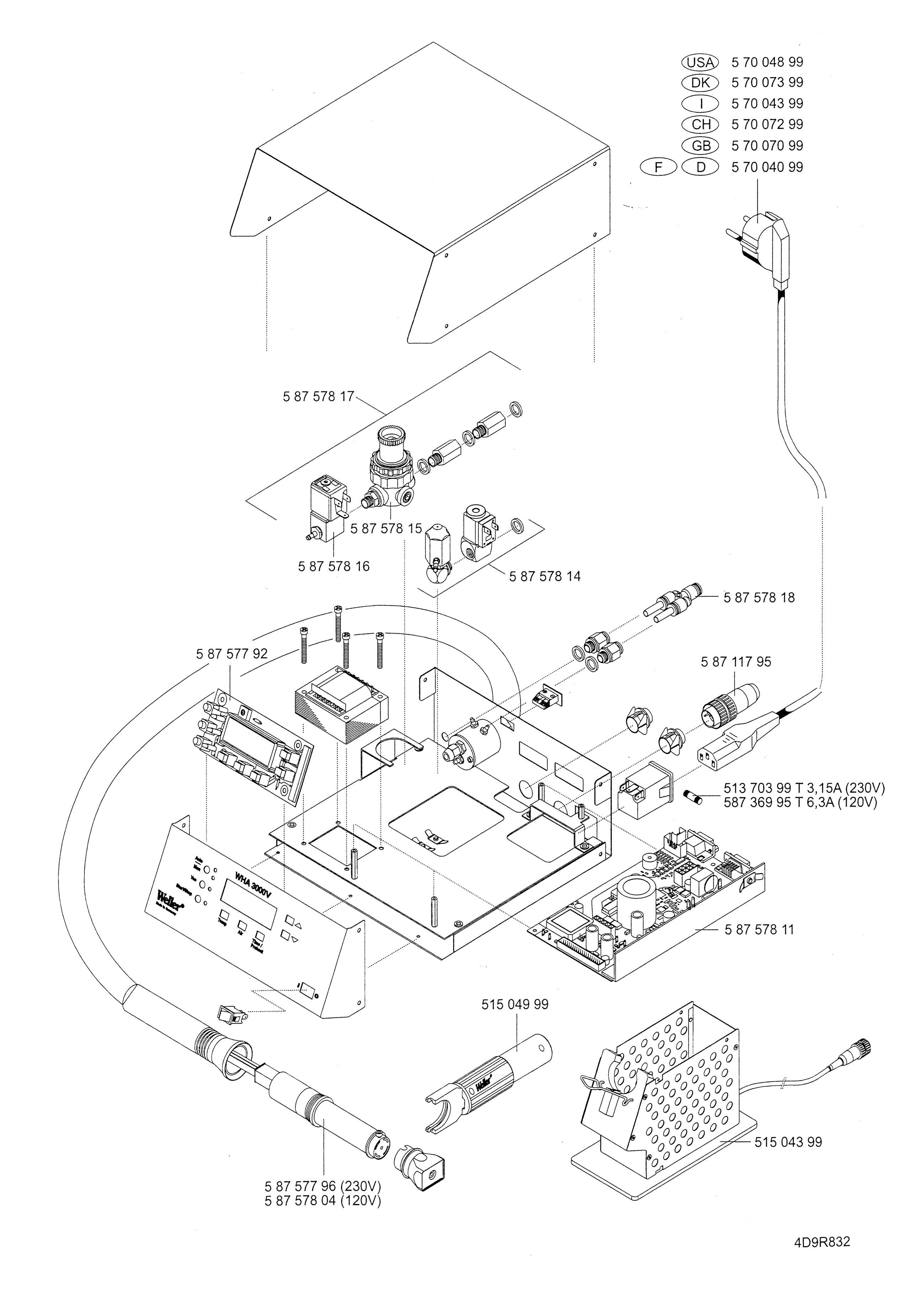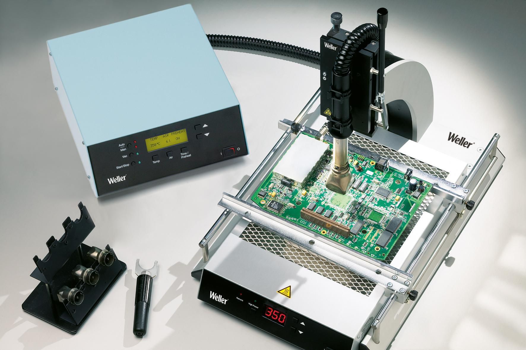 WHA 3000V Stazione ad aria calda per utilizzo con gas inerte, WBHS Supporto per circuiti stampati con cavalletto, WHP 3000 Piastra di preriscaldamento a infrarossi, 600 W
