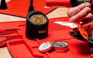 Clean and remove residual solder from your soldering iron tips without water with Weller's Soldering Brass Tip Cleaner with Silicone Holder. Simply plunge the iron tip into brass coils that clean, prevent rust and extend tip life. Increase tool safety and stability with the slip-resistant silicone holder.