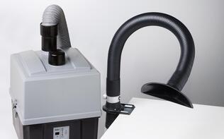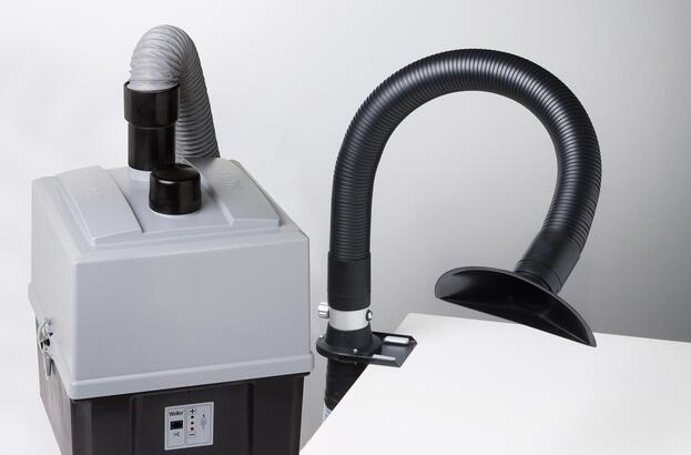 Economical fume extraction system purifies air up to 2 workplaces, included funnel nozzle for applications where a larger area needs to be covered and the funnel nozzle can be placed directly on the work bench