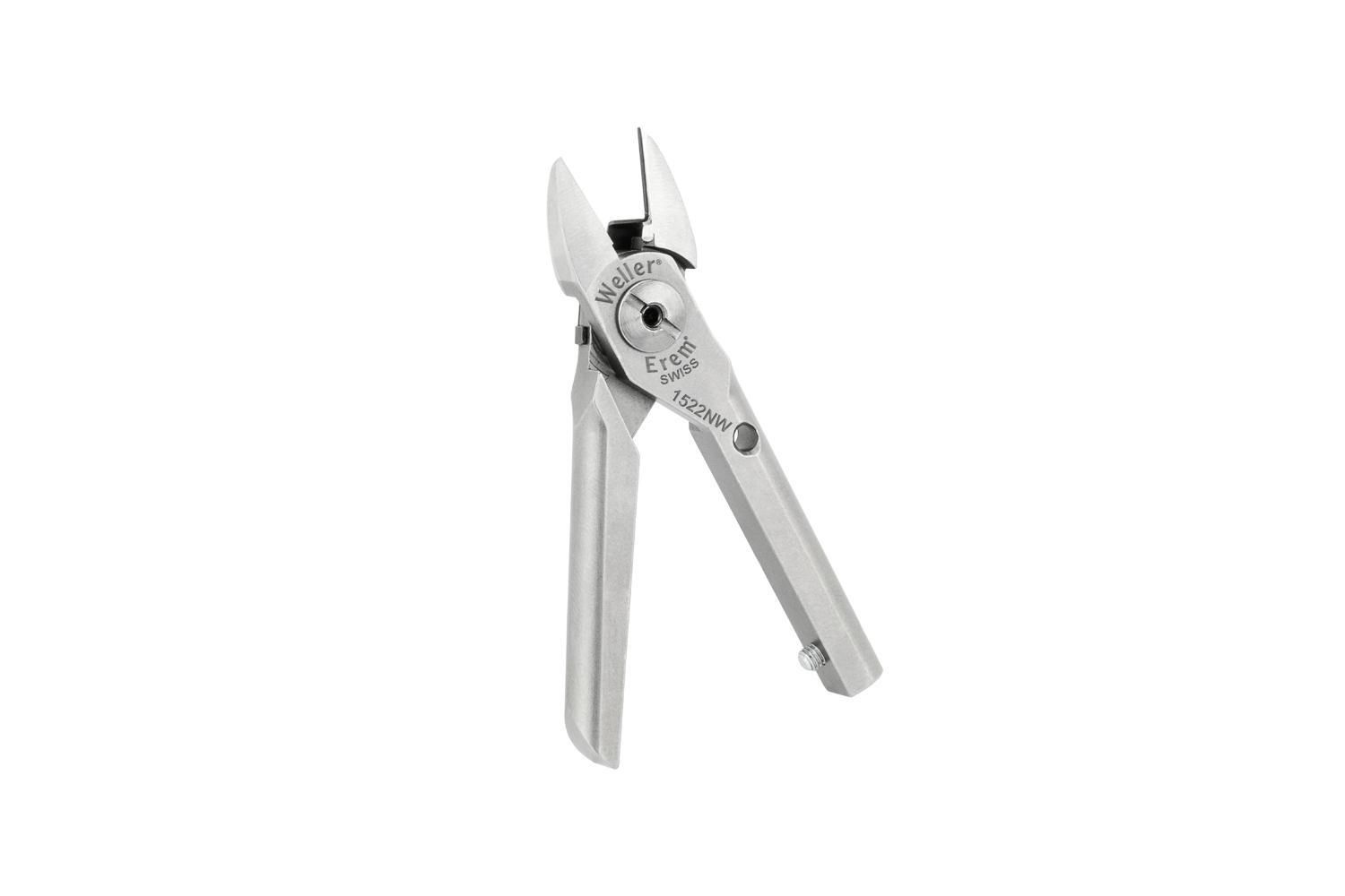 1500 Weller Erem pneumatic side cutters are light and precise. Thanks to a selection of different cutting heads they can operate extremely versatile. The cutters are suitable for cutting conventional components, soft metals or small plastic parts. The cutting heads can be interchanged easily.