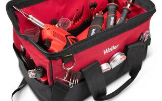 Maintain a clean and organized soldering work environment by storing your soldering equipment or tools in the Weller WLACCSCS Soldering Station Storage Case. The 13" x 8.25" x 9.5" (33cm x 21 cm x 24.13 cm) soft sided bag with shoulder strap is sized perfect for taking your tools and accessories on the go or stored when not in use.
