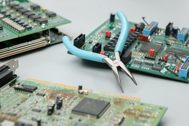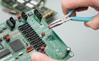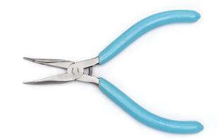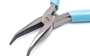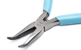 Los alicates de punta curva de 5" y 60° Weller® Xcelite® tienen mordazas dentadas finas para proporcionar un agarre seguro y son ESD-safe.