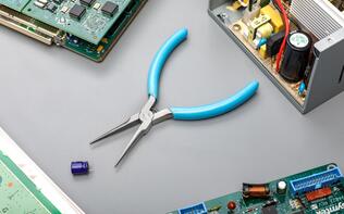 Los alicates de punta larga y delgada Weller® Xcelite® de 5-1/2" tienen una punta fina y mordazas lisas y son seguros contra descargas electrostáticas.