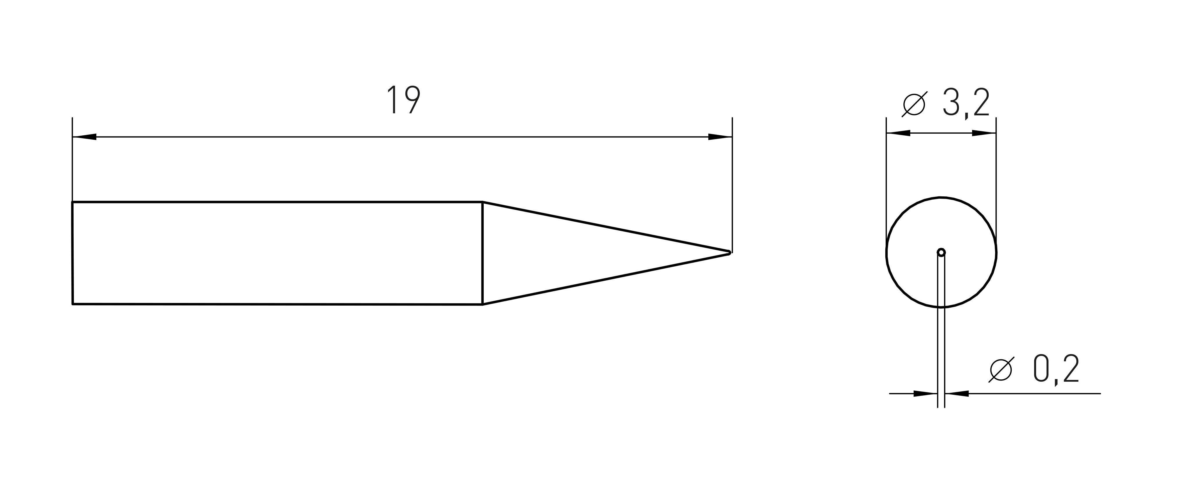 RT Micro Punta de soldadura cónica, 0.2 mm de diámetro, MIL-SPEC